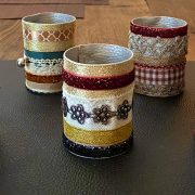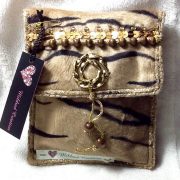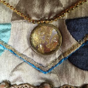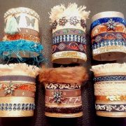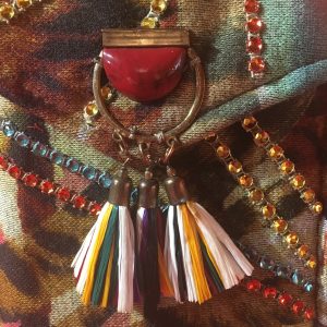 Le minutieux assemblage des pompons, perles, rubans, breloques et dentelles est exécuté par mes soins toujours avec harmonie et amour. Les matériaux utilisés proviennent de dons, de récupérations, de fin de séries principalement.