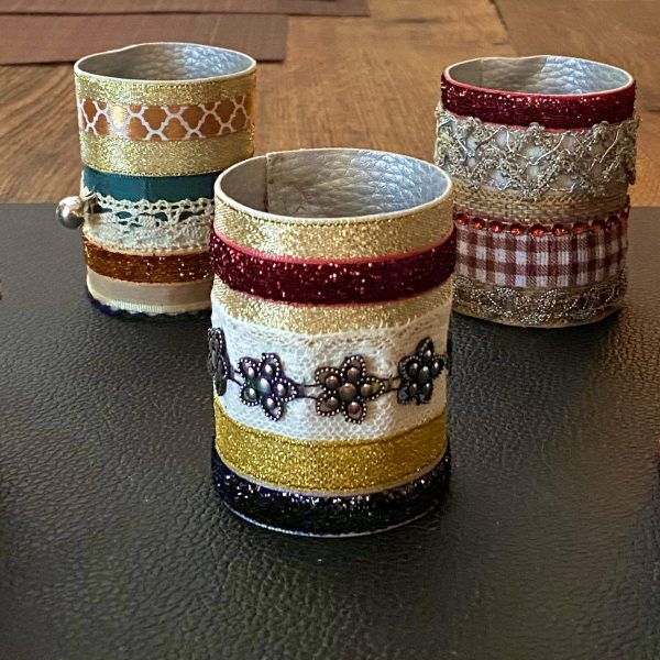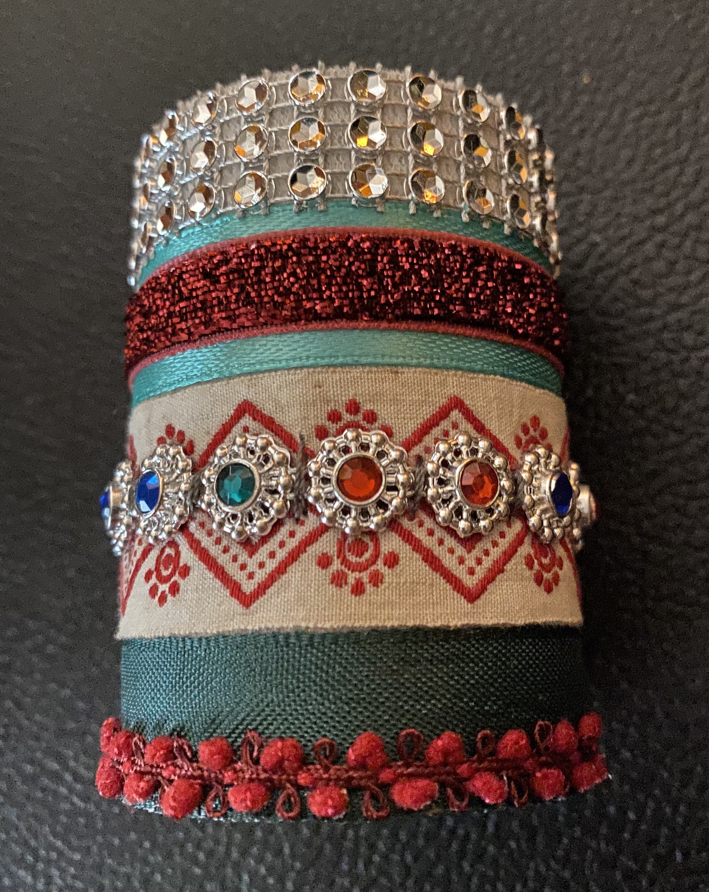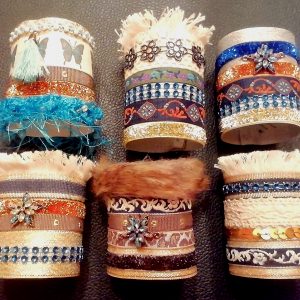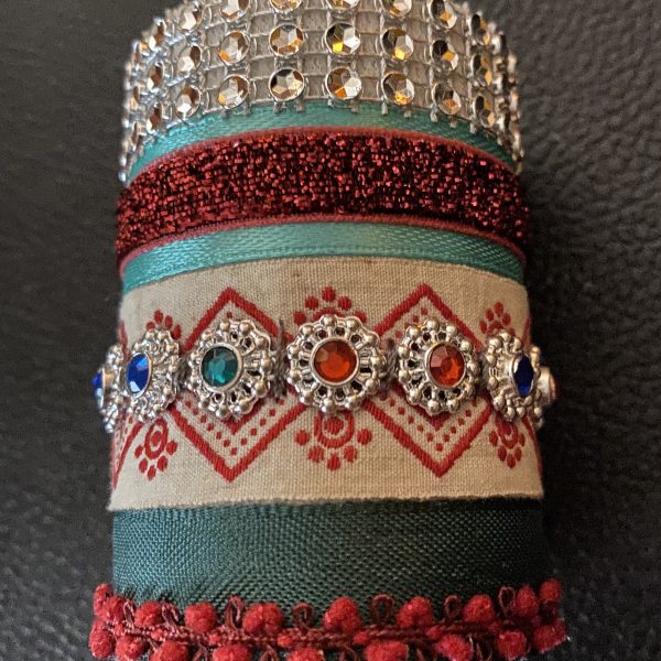 création artisanale réalisée avec des rubans des strass et des breloques lot de 6 pièces