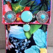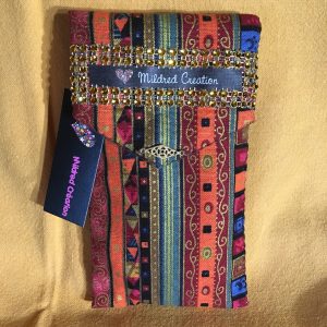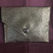 petite pochette, réalisée en tissus imitation poils de tigre, entièrement doublée. Fermeture par pression. Format 10 cm X 12 cm.