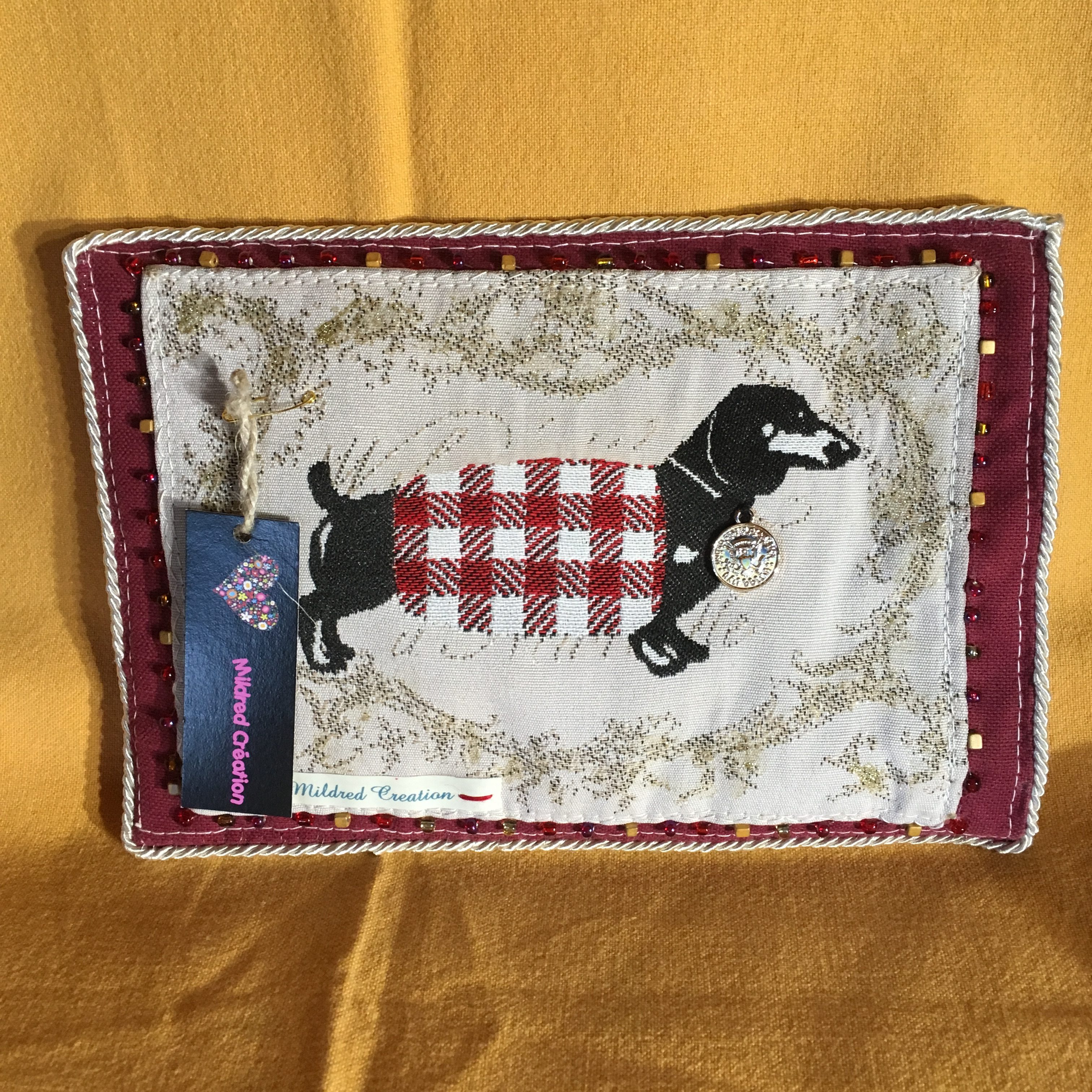 Grand étui de format 22 cm X 16 cm, motif animalier. Entièrement doublé, fermeture par pression.